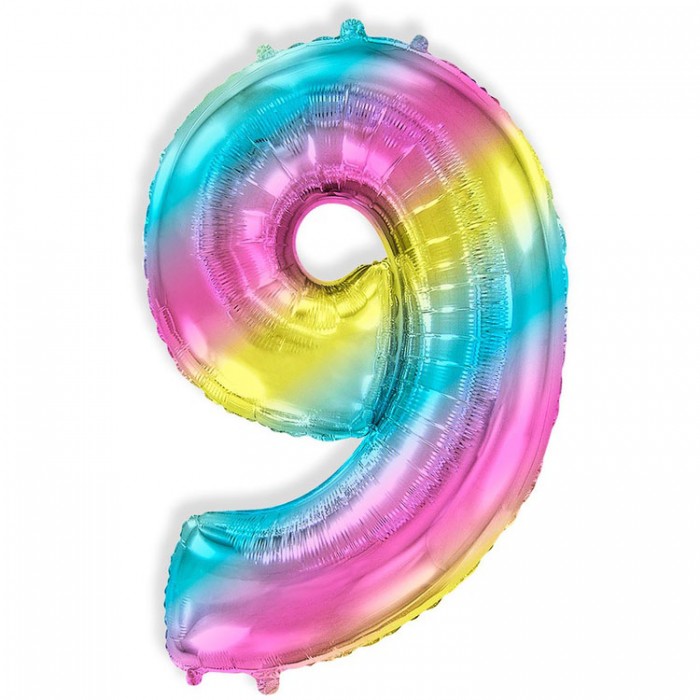 Шар радужная цифра 9